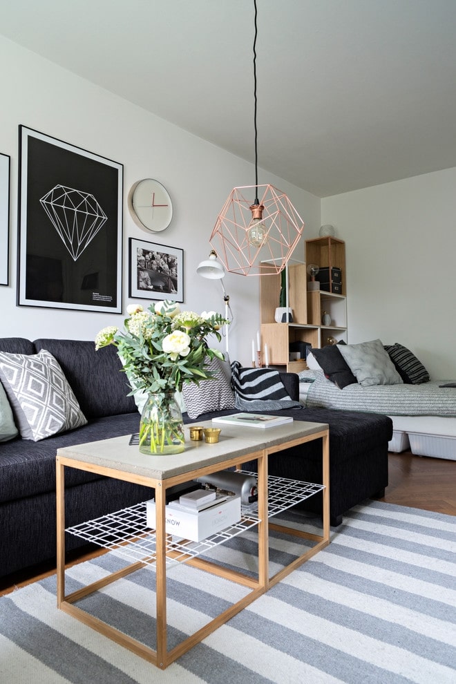 Независимо от того, будет ли в нашей комнате кровать и диван, или просто диван-кровать, рядом с такой мебелью стоит поместить кофейный столик. Этот предмет может выполнять несколько функций. Если вы не хотите подавлять интерьер комнаты, выберите стол из прозрачного стекла или пластика. Выбирайте минималистский журнальный столик из дерева или поликарбоната. В многофункциональном помещении очень важны все поверхности и шкафчики, которые используются для хранения мелких предметов. Поэтому рекомендуем покупать журнальный столик с полкой, ящиком или специальным местом хранения.